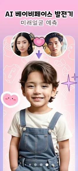 사용법도 매우 간단합니다. 부모의 사진을 선택하고, 아기의 성별과 나이를 설정한 후 하트 버튼만 누르면 결과가 나옵니다. 이처럼 직관적인 인터페이스로 누구나 쉽게 즐길 수 있습니다.