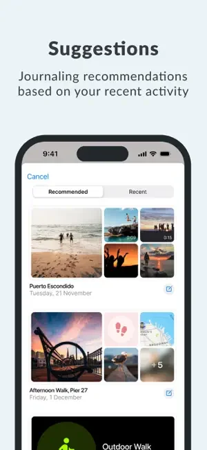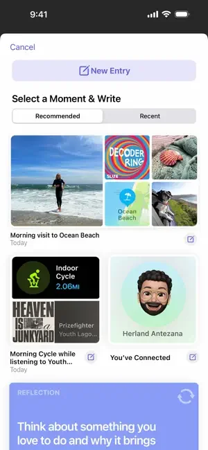 이 어플은 일상에서의 소중한 순간을 기록할 수 있는 강력한 도구입니다. 사진, 비디오, 오디오 녹음, 장소, 마음 상태 등 다양한 입력 옵션을 통해 일기를 풍성하게 꾸밀 수 있습니다. 사용자가 일기를 시작할 때는 지능적으로 제공되는 일기 쓰기 제안이 큰 도움이 되어, 빈 페이지를 두려워하지 않고 쉽게 기록을 시작할 수 있습니다.