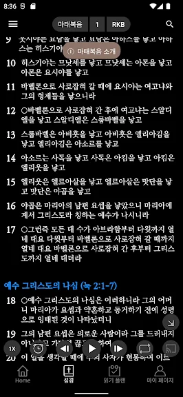 아래는 성경 + 오디오 어플에 대한 스크린샷 정보입니다.