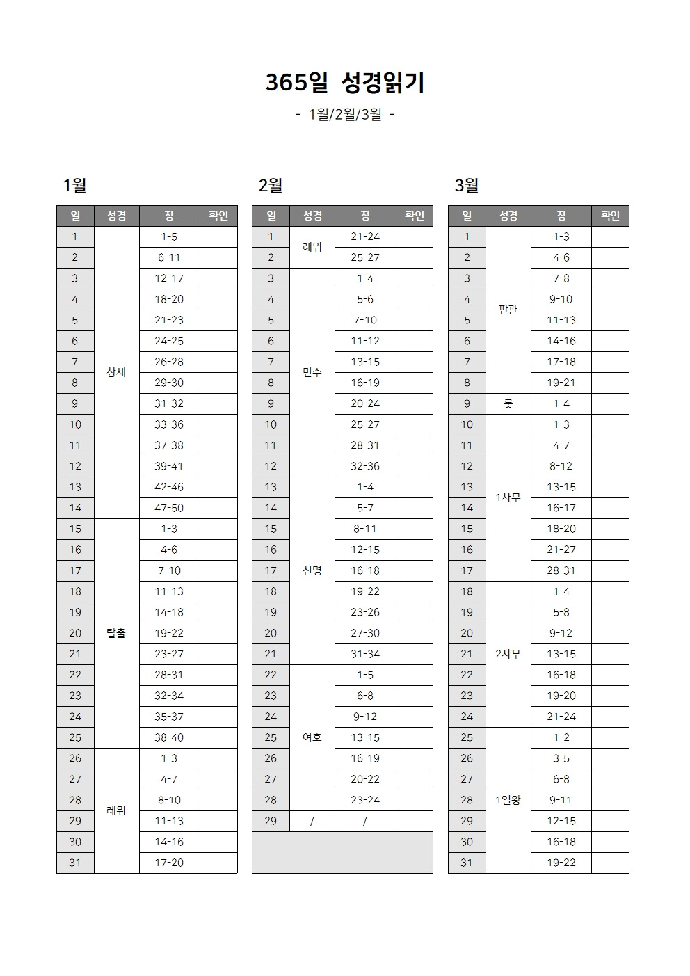 성경읽기표를 참고해서  매일 매일 성경을 읽어보세요. 1년1독 화이팅!!