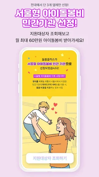 돌봄플러스 - 베이비시터 아이돌봄 아이돌봄서비스 어플에 대한 스크린샷 정보가 필요하시다면 아래 이미지를 참고하시기 바랍니다.