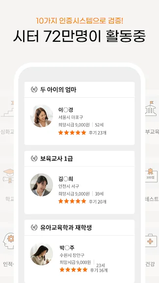 이 어플은 빠르고 효율적으로 시터를 구하고자 하는 분들에게 매우 유용합니다. 무료로 매칭되며, 신뢰할 수 있는 돌봄 서비스를 제공받고 싶은 부모님과 사용자에게 추천합니다.