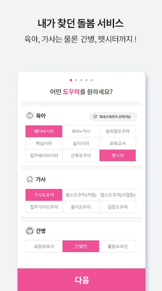 이 앱은 육아, 가사, 간병, 펫시터 등 다양한 돌봄 서비스를 필요로 하는 사람들에게 매우 유용합니다. 맞춤형 정보가 매일 푸시 알림으로 제공되어 빠르고 간편하게 필요한 서비스를 찾을 수 있습니다.