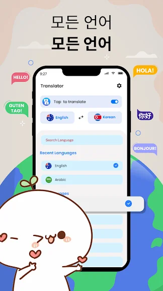 누구나 쉽게 번역할 수 있도록 직관적이고 깔끔한 디자인을 통해 앱을 탐색할 수 있습니다.