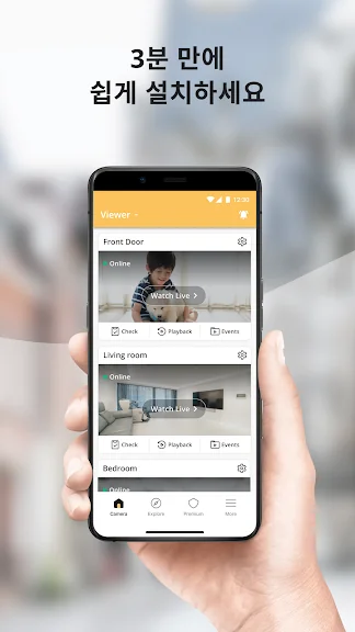 AtHome Camera를 사용하면 언제 어디서든 집안을 확인할 수 있으며, 이상상황이 발생하면 즉시 알람을 받을 수 있습니다.