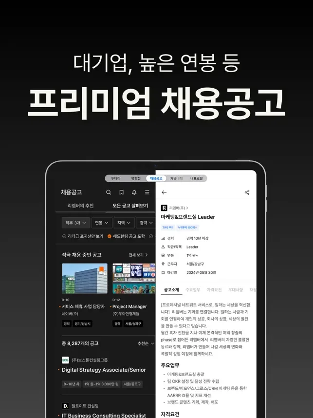 - 커리어를 확장해 줄 프리미엄 공고들을 탐색해보세요.