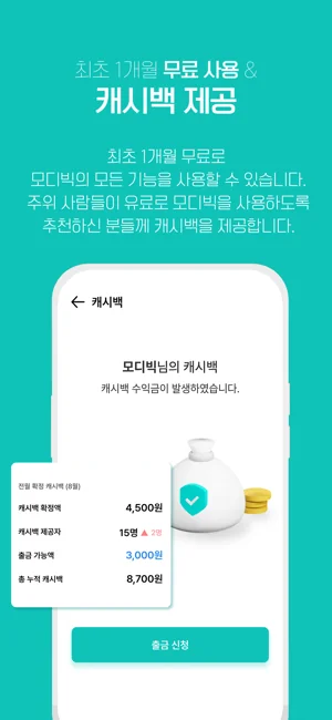 명함관리의 통계분석은 기본이고, 주위 사람들에게 추천하면 매달 누적되는 캐시백까지!
