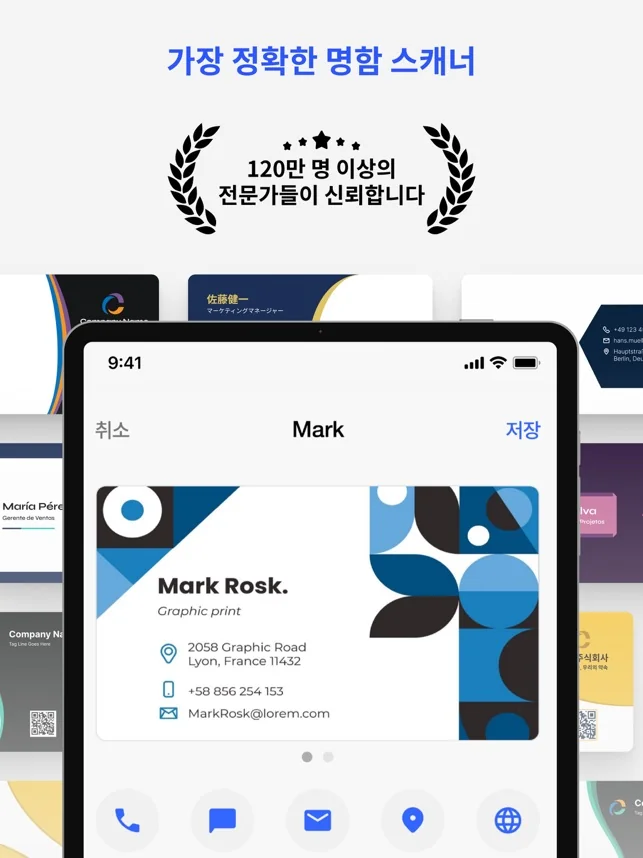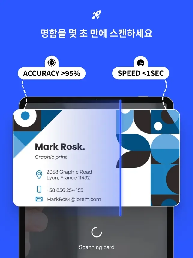 현재 시장에서 가장 정확한 명함 스캐너로 인정받았습니다.