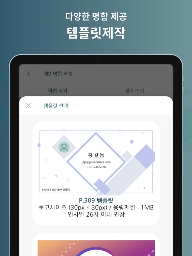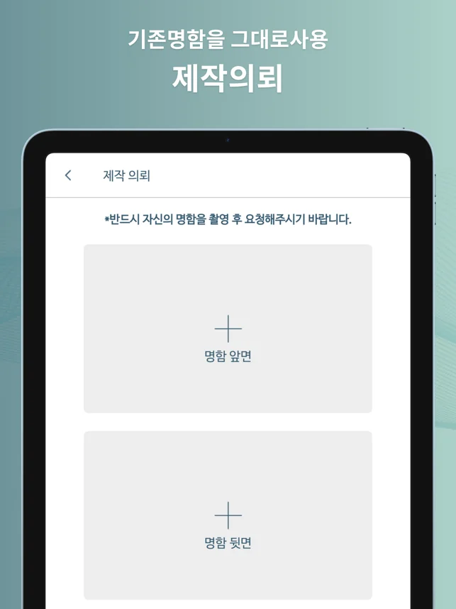 - 사진촬영, 사진 불러오기, 직접입력 등 다양한 방법으로 명함 제작