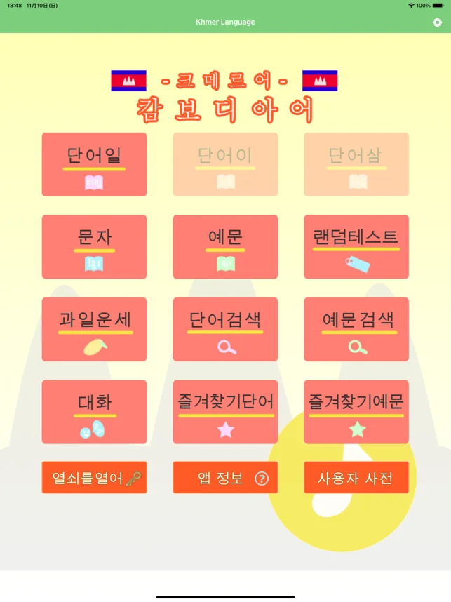 이 응용 프로그램은 한국어로 크메르어 (캄보디아어)를 배우기위한 것입니다.