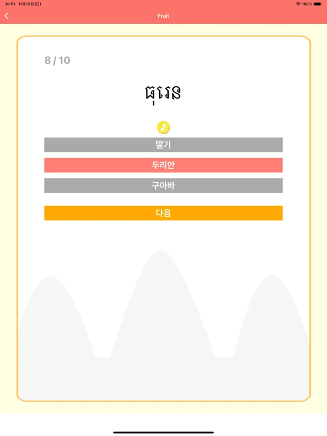 주요 콘텐츠는 어휘와 문자, 그리고 게임 감각의 작은 퀴즈를 사용할 수 있습니다.