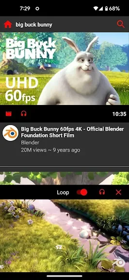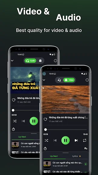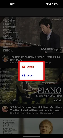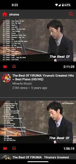 - 간단하고 사용하기 쉬움: 음악을 재생하려면 헤드폰 아이콘을 누르고, 동영상을 보려면 썸네일을 눌러서 동영상을 시청