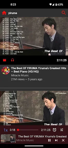 - 원하는 영상을 선택해 재생을 시작하세요.