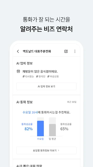 T114가 비즈연락처로 업그레이드 되어 AI가 해당 업체에 주로 어떤 사람들이 방문하는지, 언제 통화가 잘 되는지 알려줍니다