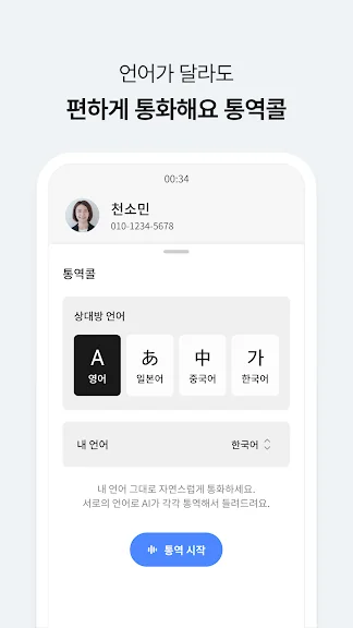 통화 중 외국어를 실시간으로 동시 통역해줍니다. 통화 참여자가 말한 내용이 상대방 언어로 번역되어 표시됩니다. 해당 기능은 국내에서만 제공됩니다.