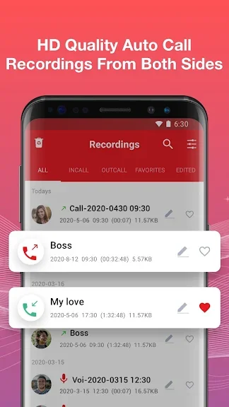 - 이 앱을 사용하면 선명한 음질로 전화 녹음을 받을 수 있습니다.