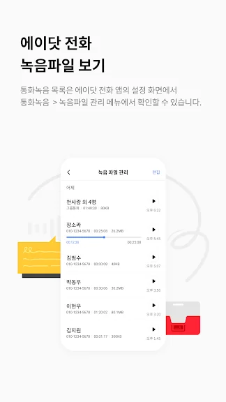 에이닷 전화에서 설정한 통화 자동녹음의 녹음 기능을 수행하는 앱 입니다. (수동 녹음 포함)