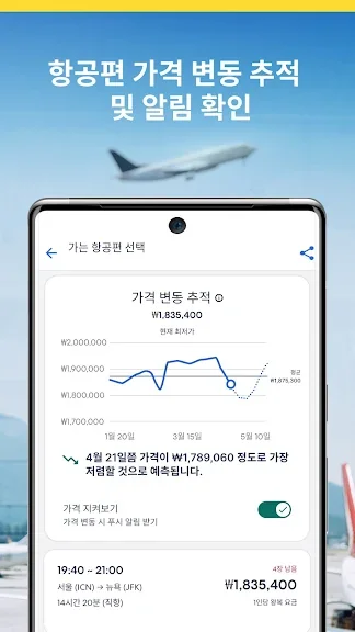 회원은 항공편을 추적하고 가격이 인상되거나 인하될 때 무료로 알림을 받으실 수 있어요.