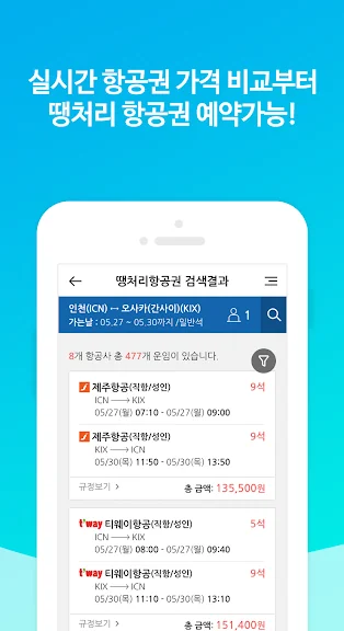 합리적인 가격의 LCC 항공권 검색은 물론, 선호하는 항공사의 티켓도 최저가로 찾아보세요.