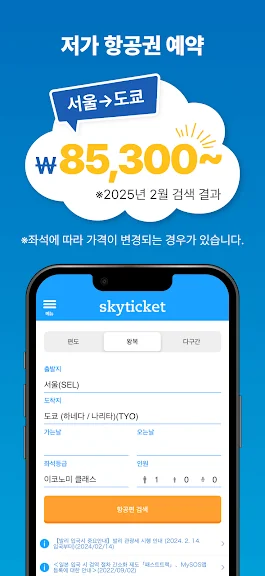아래는 skyticket - 최저가 항공권 예약 어플에 대한 스크린샷 정보입니다.