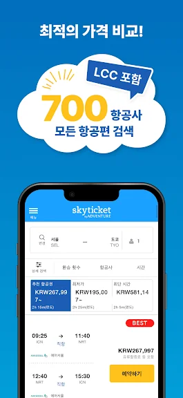 지금 skyticket 앱을 다운로드하고, 누구보다 스마트하게 최저가 여행을 떠나보세요!