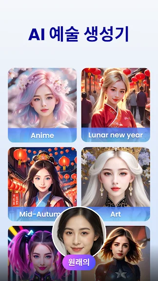 당사의 아트 생성 기능은 독특한 AI 기반 이미지를 만들어냅니다. 나만의 디자인을 만드는 데 필요한 이미지나 도구를 웹에서 찾느라 시간을 허비하던 시절은 잊어버리세요. 이제 Reface의 AI 아트가 완벽한 작품 탄생까지 책임지고 도와드립니다!
