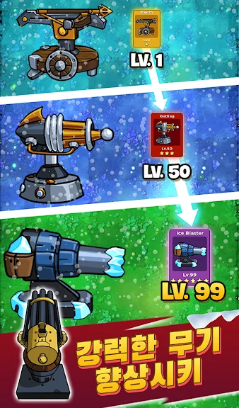 -무기, 영웅, 포탑을 업그레이드하여 더 강력한 팀을 만드세요.
