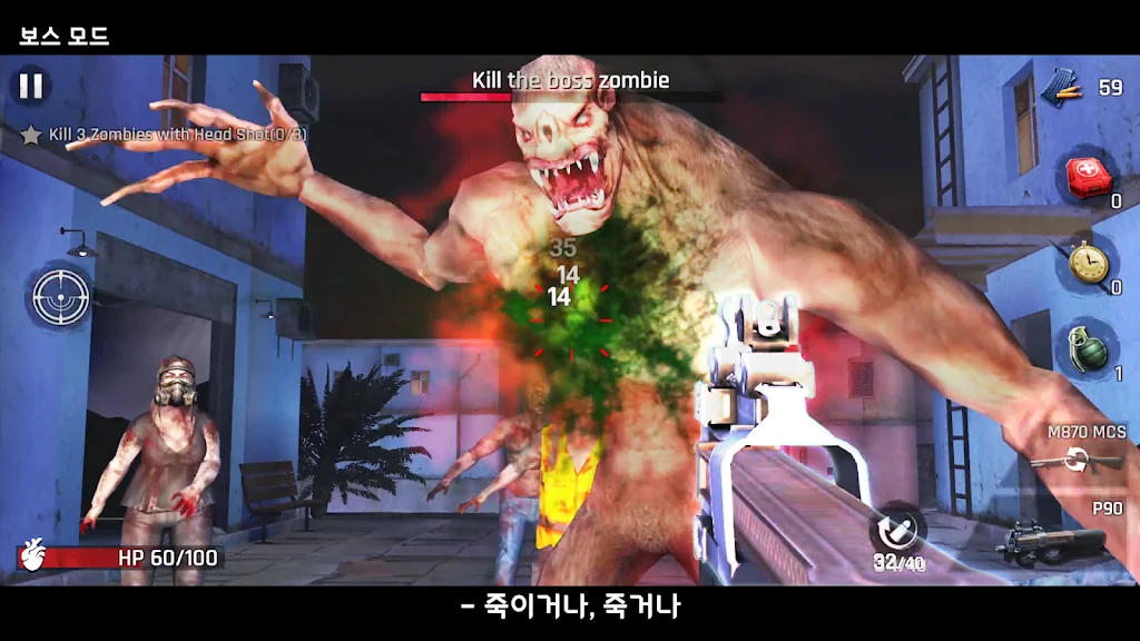 훌륭한 타격감을 경험 하실 수 있습니다. 지금 바로 좀비와의 전투에 대비하세요! 또한 좀비 PVP 모드를 통해 유저끼리의 대결을 해보세요