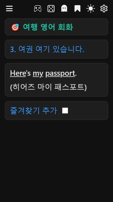 단어 발음 읽어주기 기능있고 뜻을 숨겨주는 기능도 있으며 사전 기능도 있고 문장을 번역해주는 기능도있습니다.