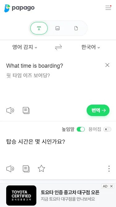 16) 단어에만 링크를 걸어주니 좀 아쉬워서 문장에도 링크를 걸었습니다. 스피커 아이콘을 클릭하면 파파고 번역사이트로 이동하며 여기에서 스피크 아이콘을 눌러서 외국어 실제 발음을 확인할수가 있습니다. 작동하는 방식에 대해 알려드리겠습니다. 질문이나 답변 카드내에 문장을 추출해서 그 문장이 한글이면 영어로 번역해주고 만약 한글이 아니면 어떤 외국어이든지간에 한국어로 번역해줍니다. 다만 질문카드나 답변카드안에 [] 나 () 같은 괄호는 텍스트 추출할때 제외됩니다. 주석이나 설명 또는 발음기호 등이 들어가 있는경우가 많아서 제외시켰으니 잘 활용하시면 좋을듯합니다. 파파고 사이트에서 스피커 아이콘을 누르면 문장을 읽어주는데 설정에서 남자 여자 변경도 가능하고 반복횟수도 변경가능하니 파파고 설정도 잘 활용해보세요.