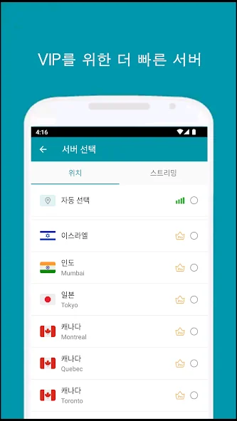 3) 가장 빠르고 안정적인 서버를 선택하여 다시 연결합니다.