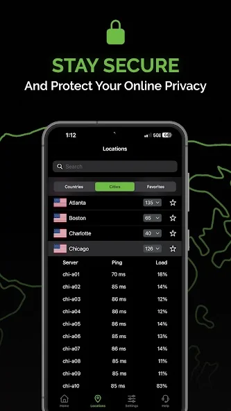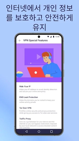 가장 안전한 보호: AES 128 비트 암호화, OpenVPN 프로토콜, IPsec 프로토콜 및 킬 스위치(Kill Switch) 제공, 온라인 개인 정보 보호 및 보안 서비스 제공.